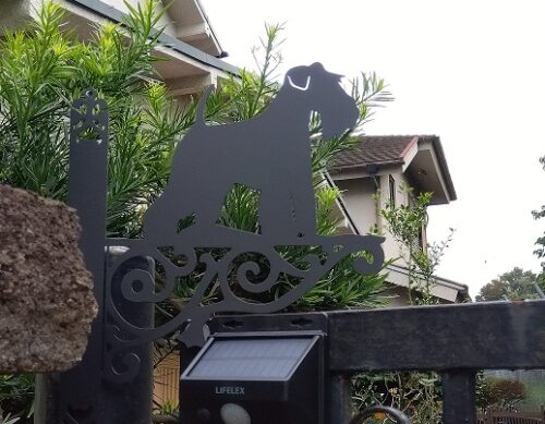 耳あり 尻尾ありのシュナウザーのメタルの看板。