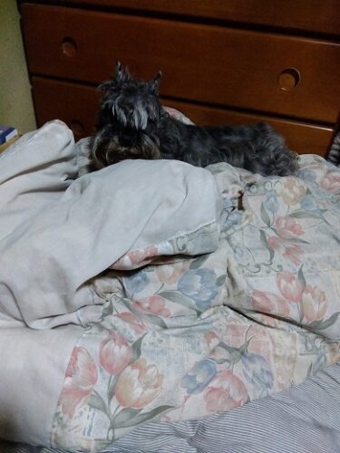 振り返ったら、干した掛布団の中から顔を出して。